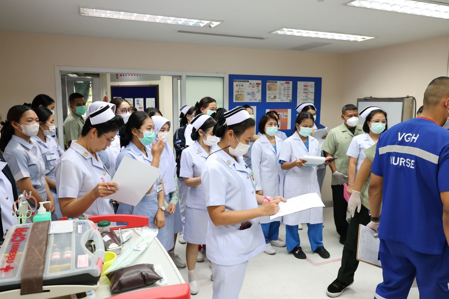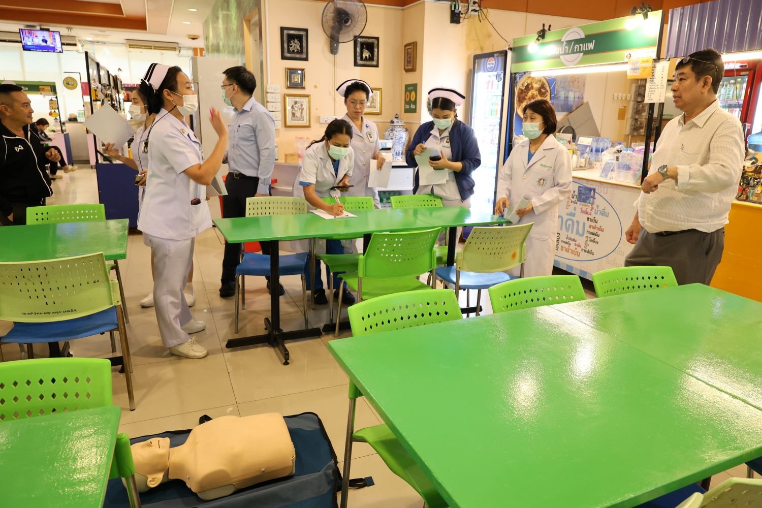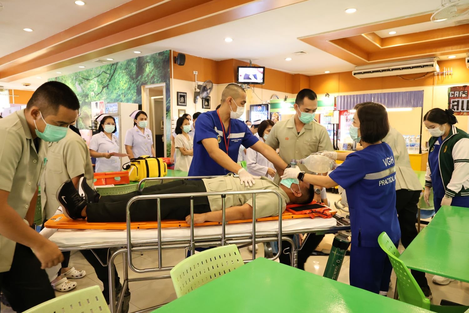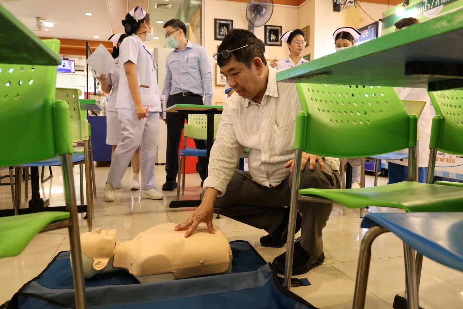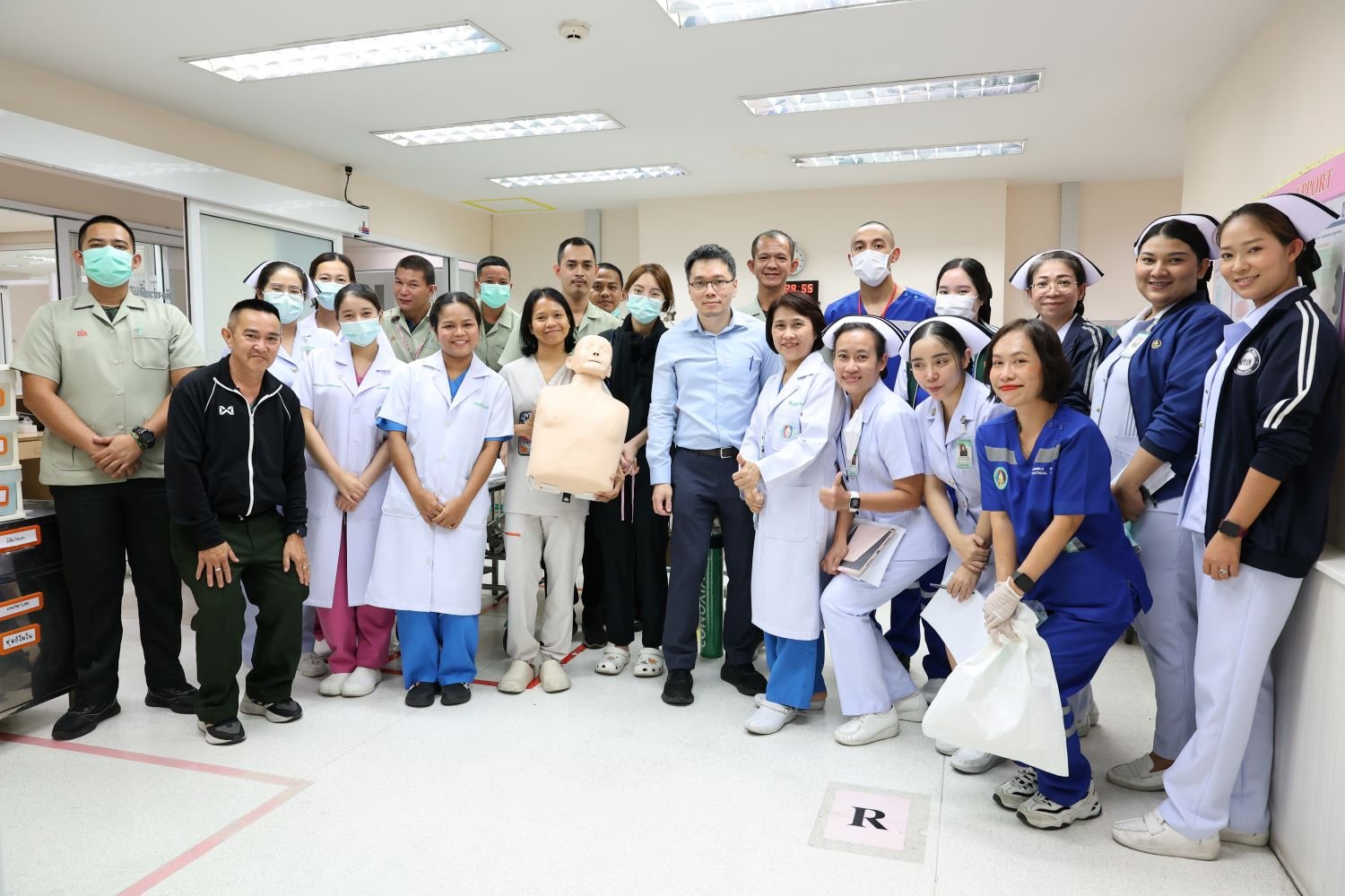 วันที่ 25 กันยายน 2568 นายแพทย์บัญญพนต์ สุขประพฤติ ผู้ชำนาญการโรงพยาบาลทหารผ่านศึก พร้อมด้วยคณะทำงานการช่วยฟื้นคีนชีพ (CPR) ของโรงพยาบาลทหารผ่านศึก จัดกิจกรรมจำลองสถานการณ์ Code R โดยการโยนหุ่น ครั้งที่ 2 ณ บริเวณห้องอาหาร ชั้น 2 โรงพยาบาลทหารผ่านศึก