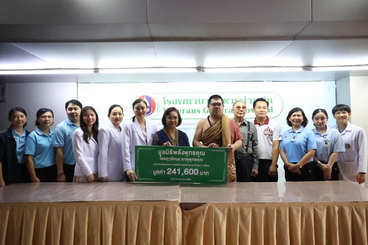 วันที่ 26 กันยายน 2568 คุณอานุสรา โรจนประดิษฐ นายกสมาคมแม่บ้านองค์การสงเคราะห์ทหารผ่านศึก แพทย์หญิงเอินฟ้า ณ นคร รองผู้อำนวยการโรงพยาบาลทหารผ่านศึก (ฝ่ายบริหาร) พร้อมด้วย คณะผู้บริหาร ให้การต้อนรับ อาจารย์ฤาษีเณร ธาตุพุทธคุณ พร้อมด้วยคณะลูกศิษย์ มูลนิธิพลังพุทธคุณ เข้ามอบเครื่องวิเคราะห์องค์ประกอบร่างกาย จำนวน 1 เครื่อง ราคา 241,600 บาท เพื่อนำไปใช้ในการบริการรักษาของโรงพยาบาลทหารผ่านศึก ณ OPD ชั้น 1 อาคารเฉลิมพระเกียรติ 7 รอบ พระชนมพรรษา และบริเวณด้านหน้ากองบริการสายการแพทย์ โรงพยาบาลทหารผ่านศึก