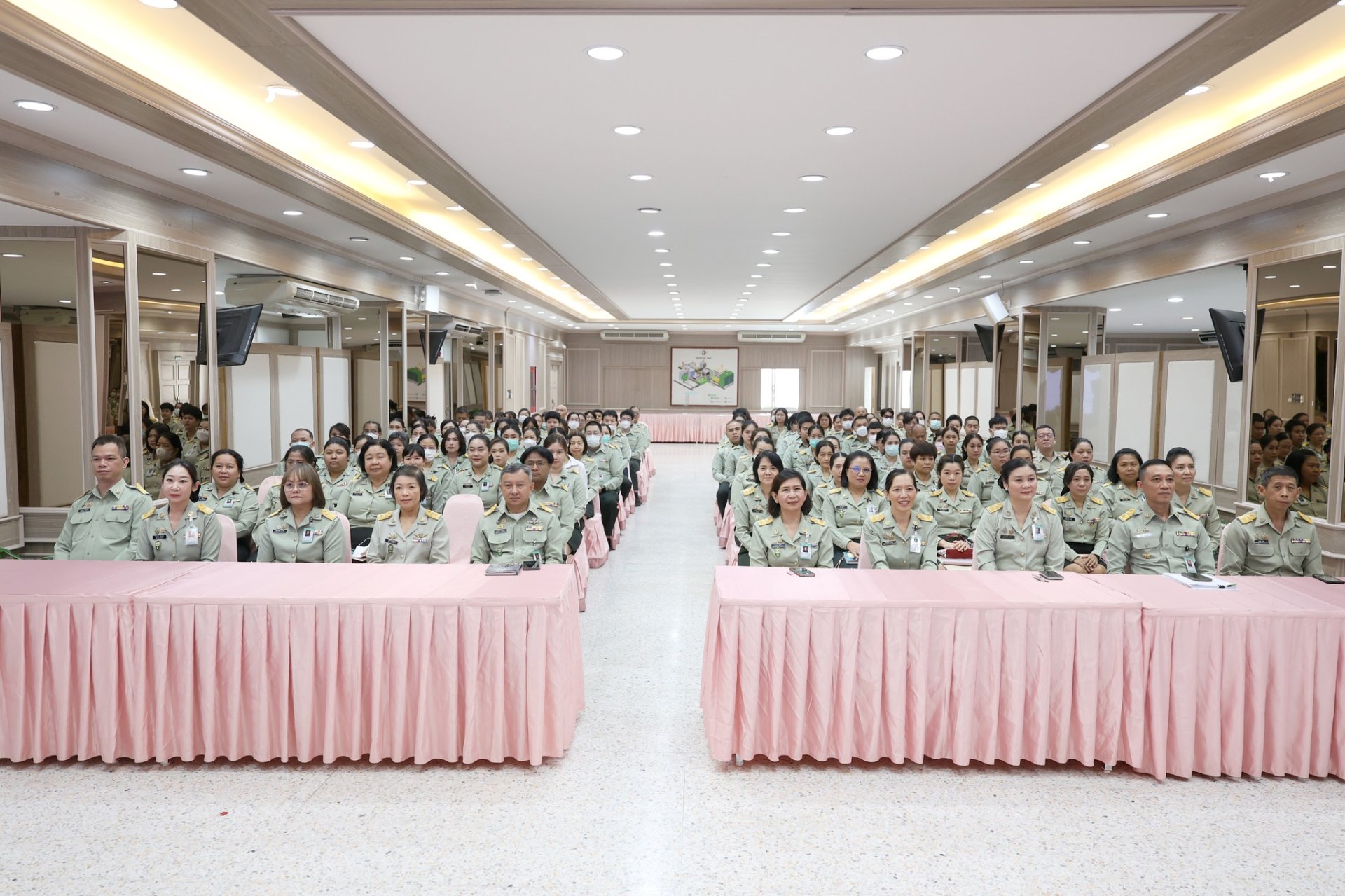 ในส่วนของโรงพยาบาลทหารผ่านศึก แพทย์หญิงเอินฟ้า ณ นคร รองผู้อำนวยการโรงพยาบาลทหารผ่านศึก (ฝ่ายบริหาร) เป็นหัวหน้าคณะ นำพนักงานของโรงพยาบาลทหารผ่านศึก เข้ารับฟังการแถลงนโยบาย ณ ห้องประชุม อาคาร 2 ชั้นที่ 2 โรงพยาบาลทหารผ่านศึก