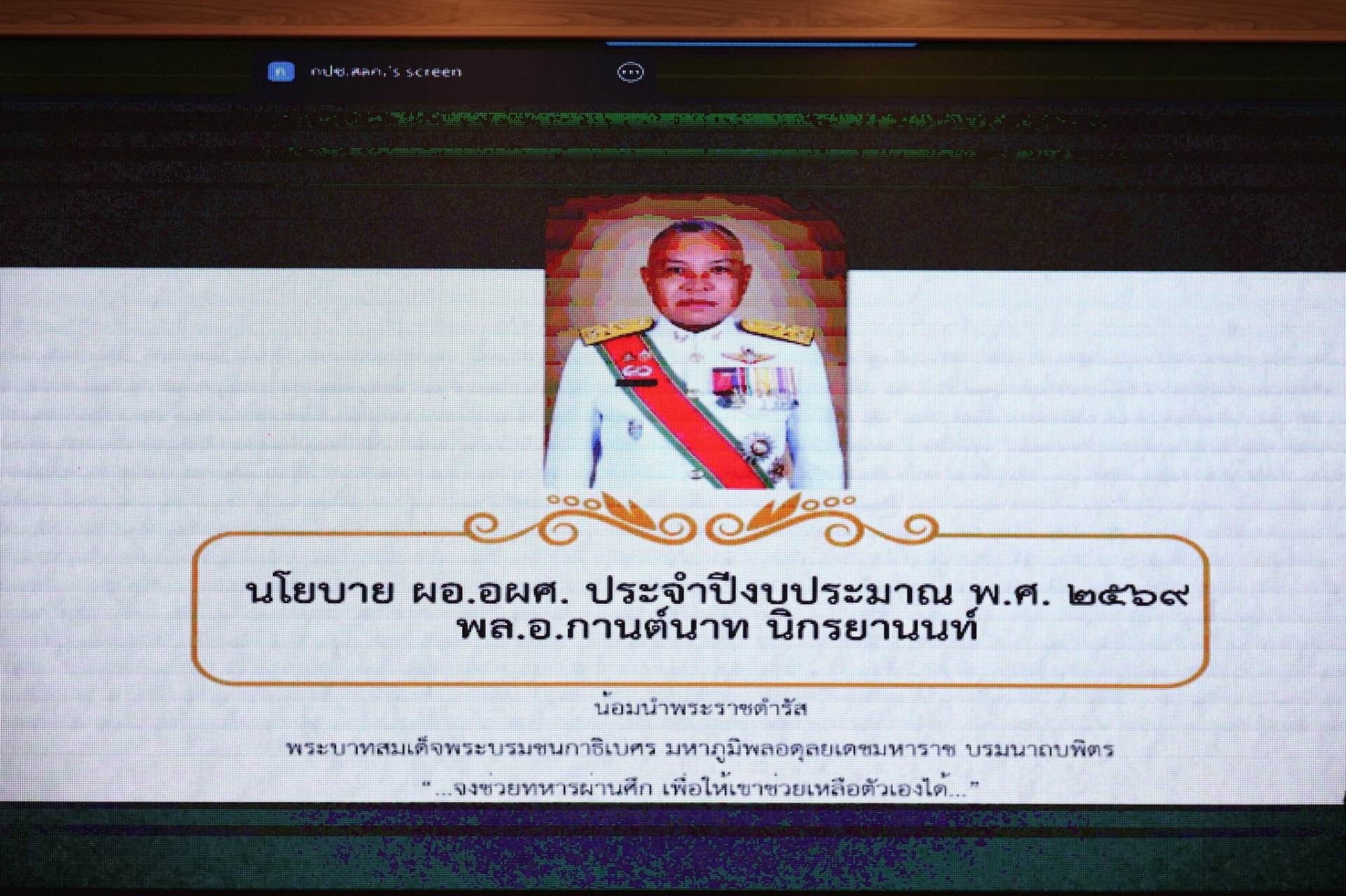 เมื่อวันที่ 17 ตุลาคม 2568 พลเอก กานต์นาท นิกรยานนท์ ผู้อำนวยการองค์การสงเคราะห์ทหารผ่านศึก ได้มอบนโยบายผู้อำนวยการองค์การสงเคราะห์ทหารผ่านศึก ประจำปีงบประมาณ พ.ศ.2569 ให้แก่หน่วยขึ้นตรงทั้งส่วนกลางและส่วนภูมิภาค รวมทั้งหน่วยงานกิจการพิเศษขององค์การสงเคราะห์ทหารผ่านศึก ทั้งนี้ ได้รับฟังการแถลงนโยบายโดยพร้อมเพรียงกันผ่านระบบการประชุมออนไลน์