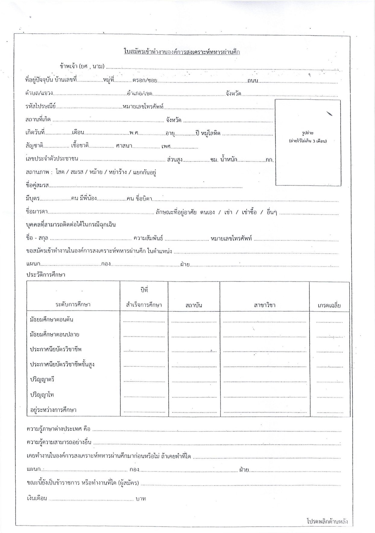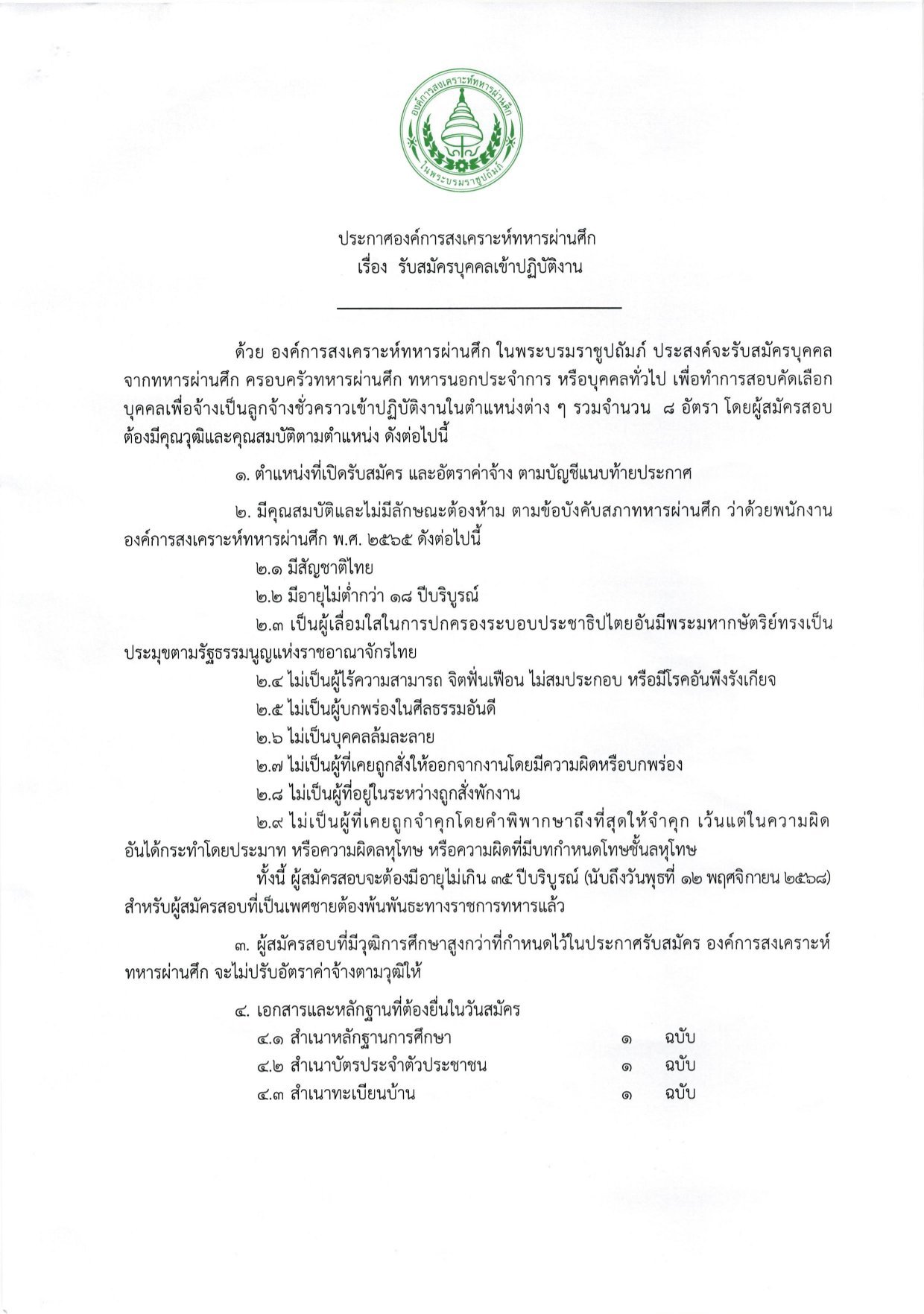 เปิดรับสมัคร ! บุคคลจากทหารผ่านศึก ครอบครัวทหารผ่านศึก ทหารนอกประจำการ หรือบุคคลทั่วไป