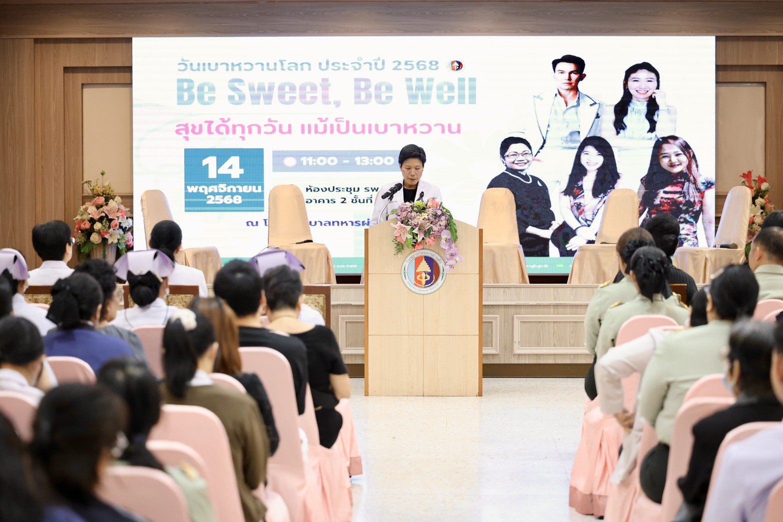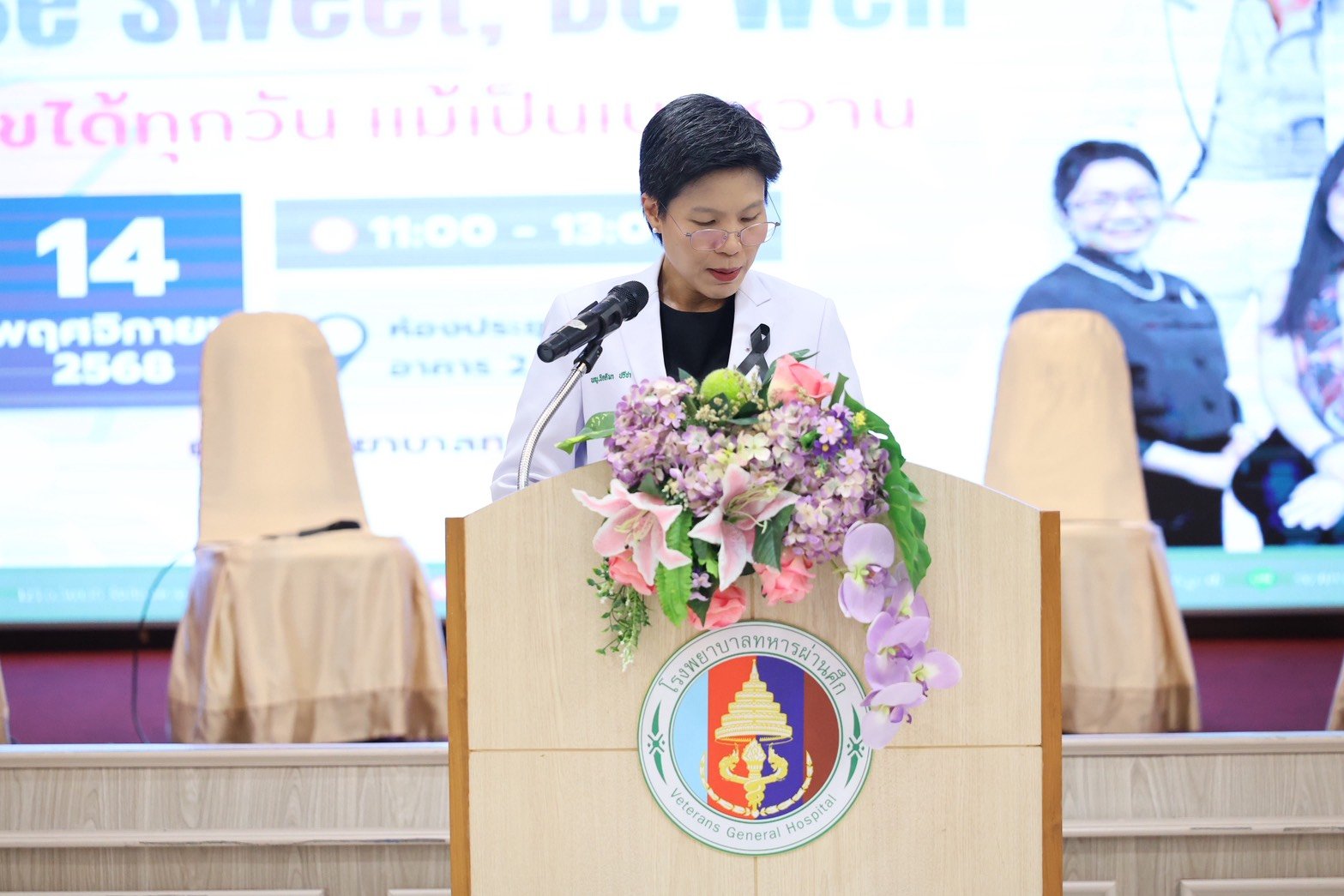 เมื่อวันที่ 14 พฤศจิกายน 2568 แพทย์หญิงจิตติมา ปรีชา ผู้อำนวยการโรงพยาบาลทหารผ่านศึกเป็นประธานในพิธีเปิดการจัดงานวันเบาหวานโลกประจำปี 2568 ภายใต้ชื่องาน “Be Sweet, Be Well สุขได้ทุกวัน แม้เป็นเบาหวาน” (Diabetes and Well-being) ณ ห้องประชุมโรงพยาบาลทหารผ่านศึก อาคาร 2 ชั้นที่ 2 โดยมี คุณจิตตานันท์ นิกรยานนท์ นายกสมาคมแม่บ้านองค์การสงเคราะห์ทหารผ่านศึก และคณะกรรมการบริหารสมาคมฯ คณะผู้บริหารโรงพยาบาลทหารผ่านศึก