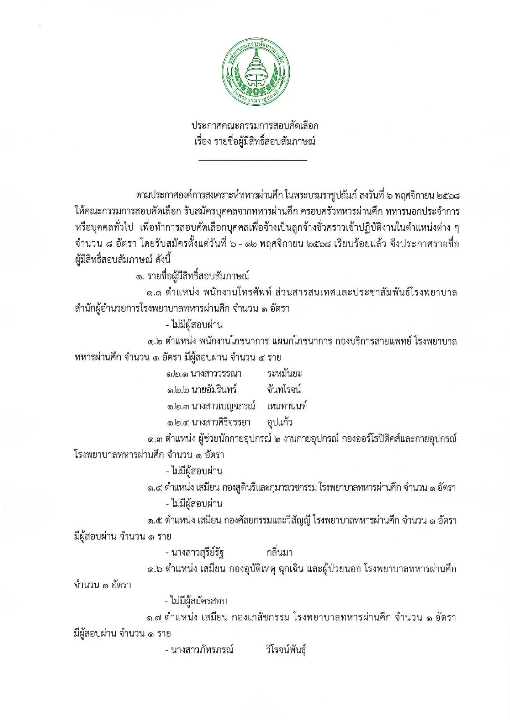 ประกาศรายชื่อผู้มีสิทธิ์สอบสัมภาษณ์