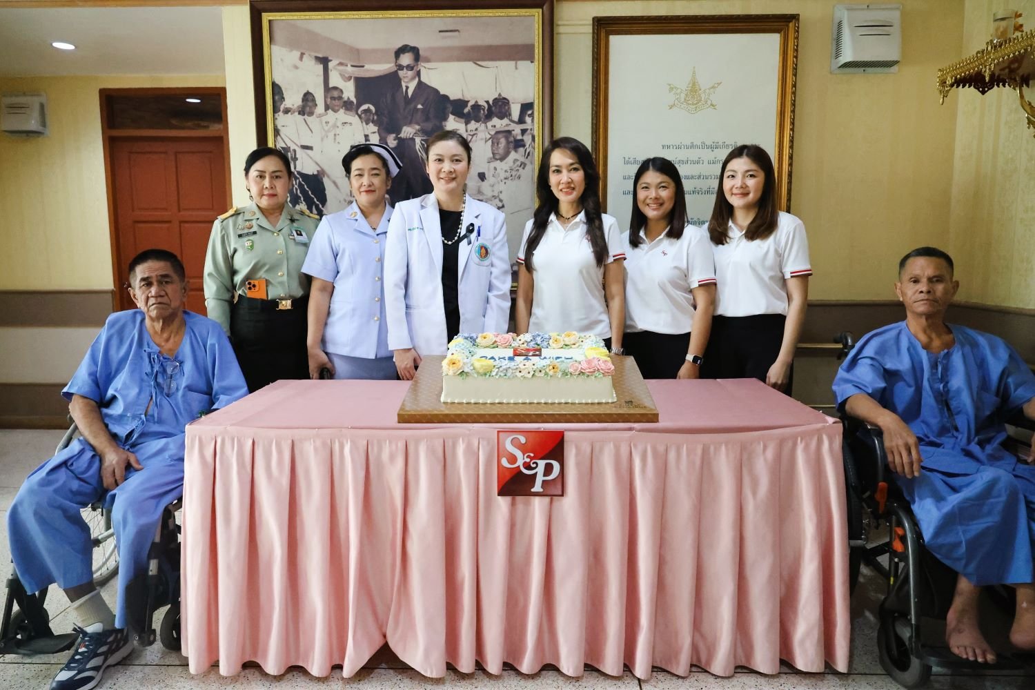 เมื่อวันที่ 15 มกราคม 2569 แพทย์หญิงเอินฟ้า ณ นคร รองผู้อำนวยการโรงพยาบาลทหารผ่านศึก (ฝ่ายบริหาร) เป็นผู้แทนผู้อำนวยการโรงพยาบาลทหารผ่านศึก รับมอบขนมเค้ก S&P ในโครงการ “Cake a wish Make a wish 2026” จาก คุณมณีสุดา ศิลาอ่อน ประธานเจ้าหน้าที่สำนักพัฒนาความยั่งยืนและสื่อสารองค์กร บริษัท เอส แอนด์ พี ซินดิเคท จำกัด (มหาชน) และคณะ ซึ่งเป็นการทำกิจกรรม CSR เพื่อตอบแทนสังคมต่อเนื่องเป็นปีที่ 22 โดยมอบขนมเค้ก S&P จำนวน 10 ปอนด์ เพื่อส่งมอบความสุขเนื่องในโอกาสวันขึ้นปีใหม่ 2569 ให้แก่ทหารผ่านศึกที่ได้รับบาดเจ็บจากการปฏิบัติหน้าที่ ซึ่งพักรักษาตัว ณ ตึกผู้ป่วย อาคาร 2 ชั้นที่ 3 โรงพยาบาลทหารผ่านศึก นอกจากนี้ ยังได้เยี่ยมเยียนและพูดคุยเพื่อสร้างขวัญกำลังใจให้แก่ทหารผ่านศึกอีกด้วย