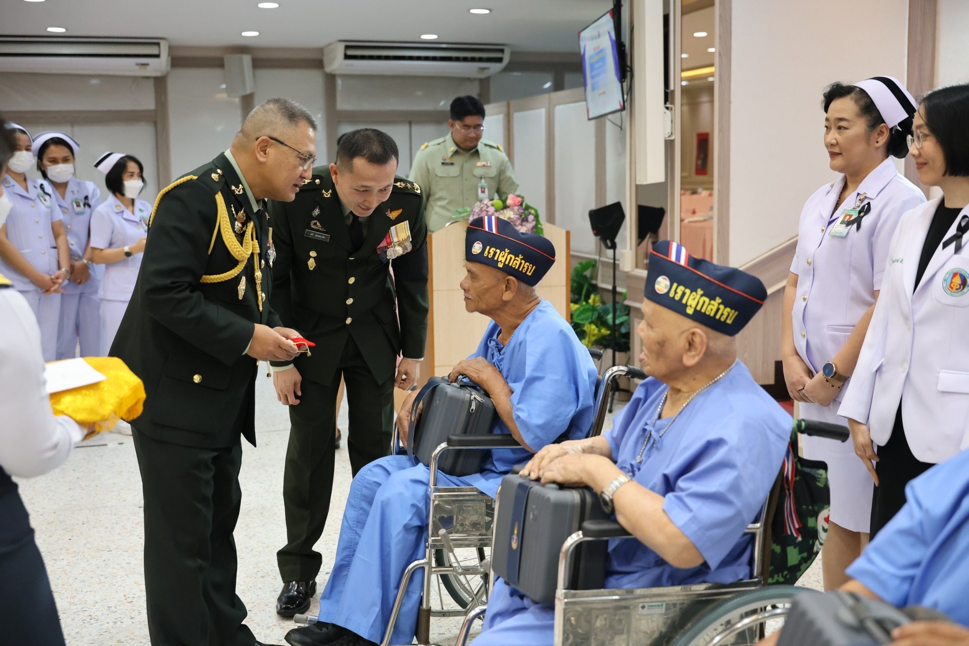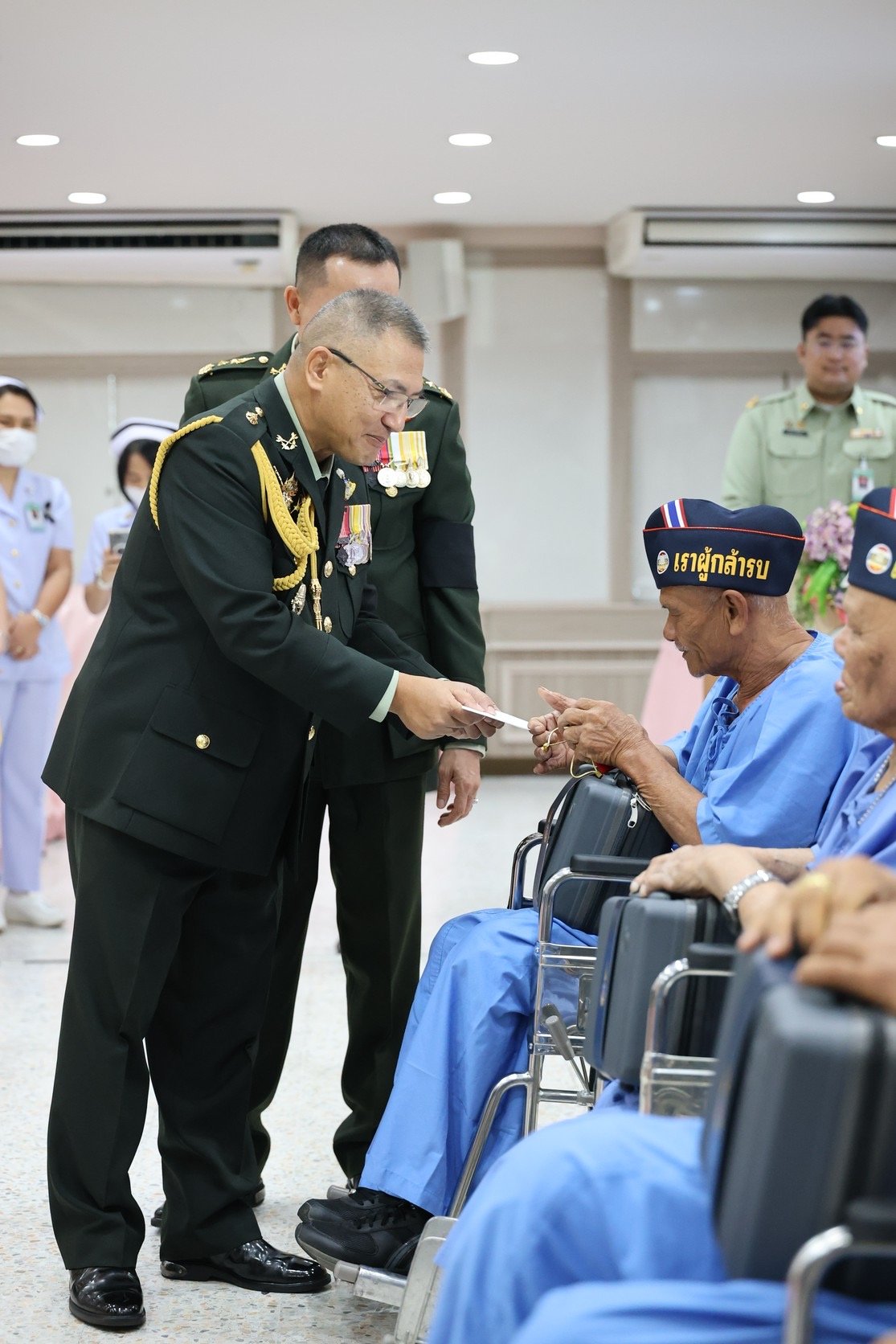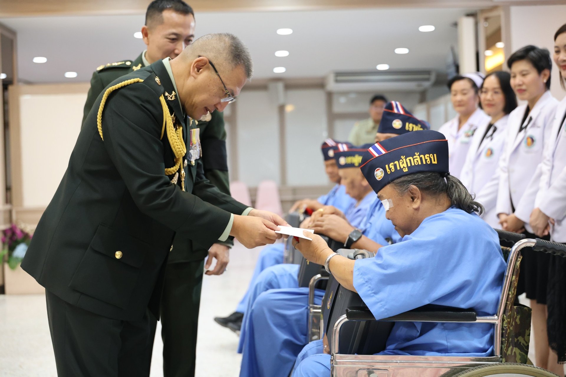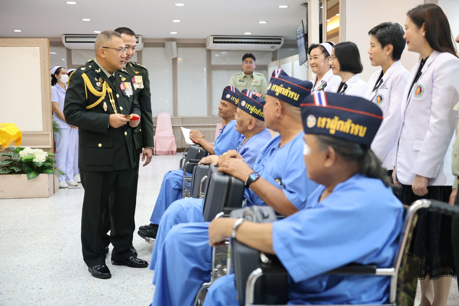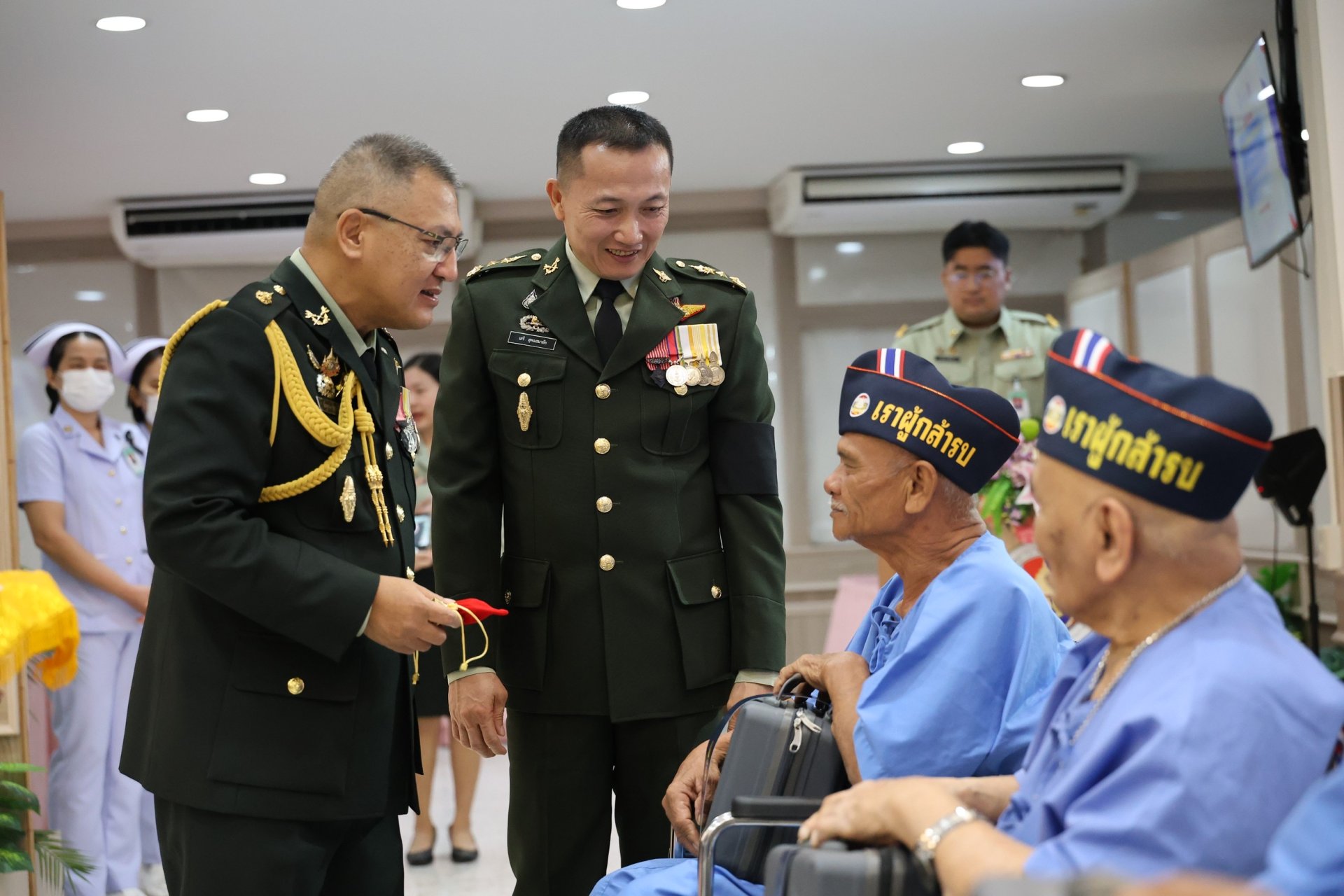 เมื่อวันที่ 18 มกราคม 2569 พลเอก ณัฐพงษ์ เพราแก้ว รองเสนาธิการทหาร กองบัญชาการกองทัพไทย พร้อมด้วยผู้แทนเหล่าทัพจากสำนักงานปลัดกระทรวงกลาโหม กองทัพบก กองทัพเรือ กองทัพอากาศ และสำนักงานตำรวจแห่งชาติ เข้าเยี่ยมเยียน พร้อมมอบของเยี่ยมและเงินบำรุงขวัญให้แก่ทหารผ่านศึกที่ได้รับบาดเจ็บจากการปฏิบัติหน้าที่ ซึ่งพักรักษาตัวอยู่ที่โรงพยาบาลทหารผ่านศึก จำนวน 73 นาย เนื่องในวันกองทัพไทย ประจำปี 2569 โดยมี พลโท เสรี สุคณธมาลัย รองผู้อำนวยการองค์การสงเคราะห์ทหารผ่านศึก เป็นผู้แทนผู้อำนวยการองค์การสงเคราะห์ทหารผ่านศึก พร้อมด้วย แพทย์หญิงจิตติมา ปรีชา ผู้อำนวยการโรงพยาบาลทหารผ่านศึก และคณะผู้บริหารโรงพยาบาลทหารผ่านศึก ให้การต้อนรับ ณ ห้องประชุม อาคาร 2 ชั้นที่ 2 โรงพยาบาลทหารผ่านศึก