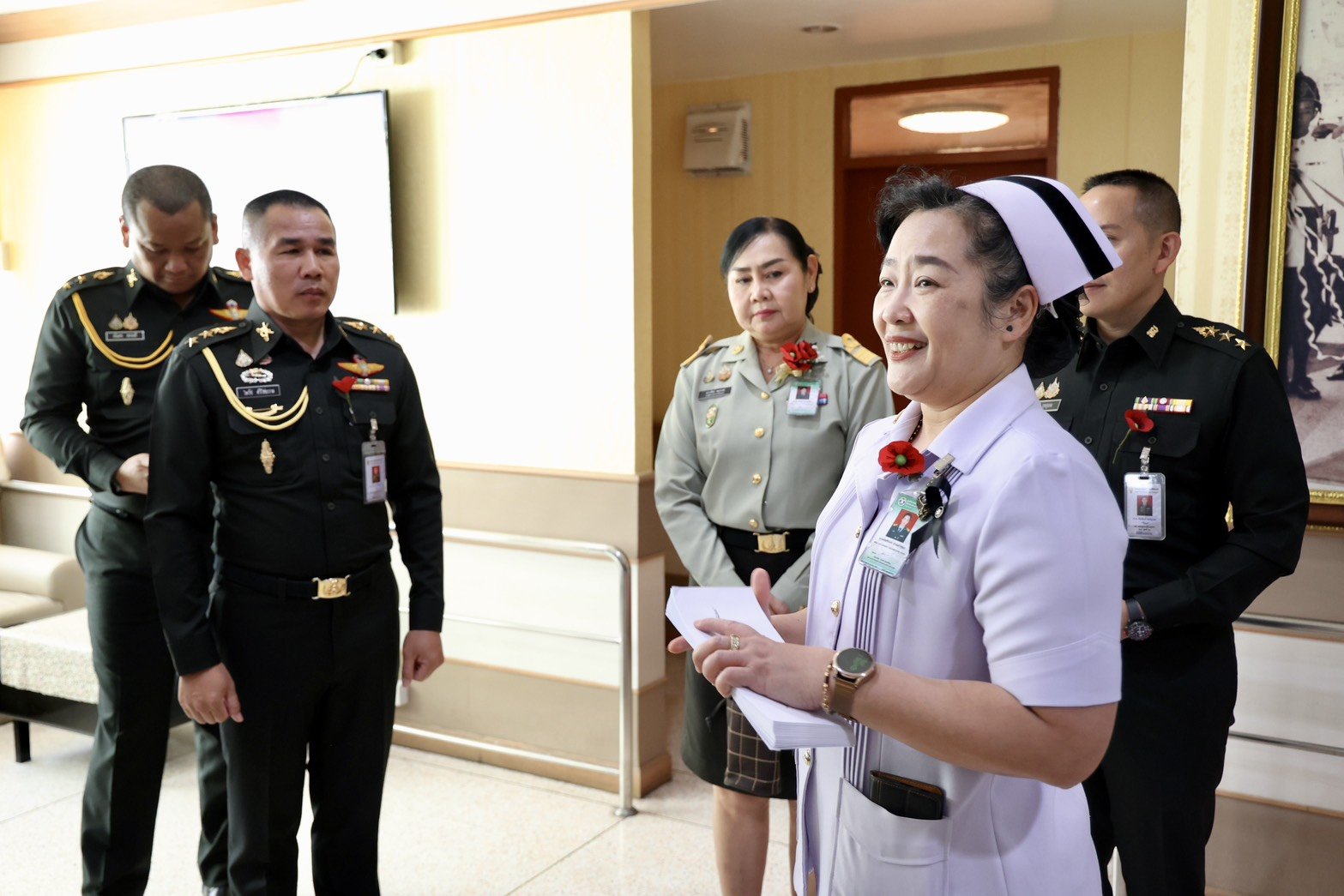 เมื่อวันที่ 2 กุมภาพันธ์ 2569 แพทย์หญิงเอินฟ้า ณ นคร รองผู้อำนวยการโรงพยาบาลทหารผ่านศึก (ฝ่ายบริหาร) และคณะ ให้การต้อนรับ คณะอาจารย์และคณะนักศึกษา หลักสูตรหลักประจำวิทยาลัยการทัพบก ชุดที่ 71 (วทบ.71) นำโดย พันเอก ปราโมท หม่อมศิลา อาจารย์ประจำหลักสูตร ในโอกาสเข้าเยี่ยมเยียนและมอบเงินบำรุงขวัญ เพื่อสร้างขวัญกำลังใจและแสดงความห่วงใยแก่ทหารผ่านศึกที่พิการทุพพลภาพจากการปฏิบัติหน้าที่ซึ่งพักรักษาตัวอยู่ที่โรงพยาบาลทหารผ่านศึก ณ ตึกผู้ป่วย อาคาร 2 ชั้นที่ 3, 4 และ 7 โรงพยาบาลทหารผ่านศึก