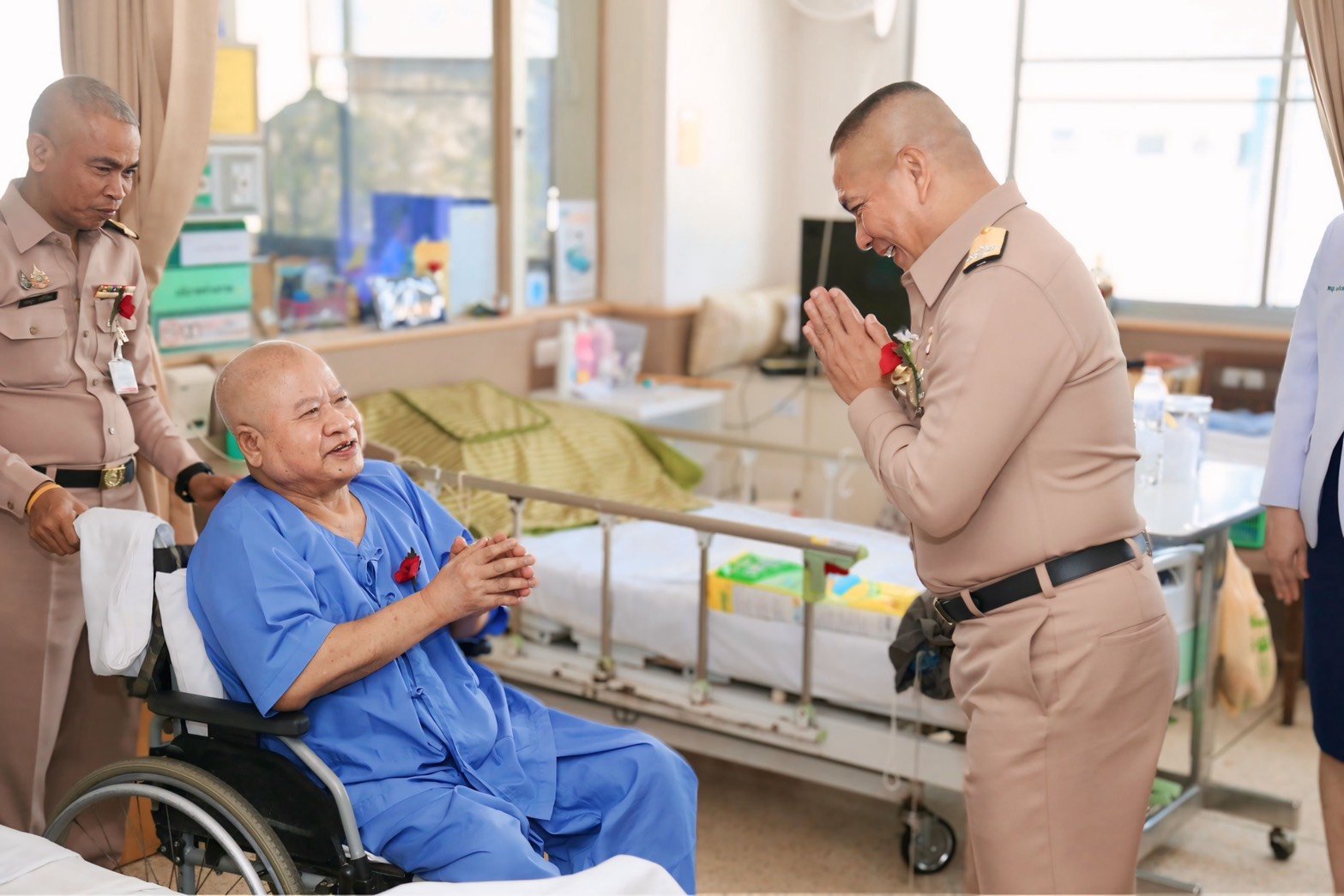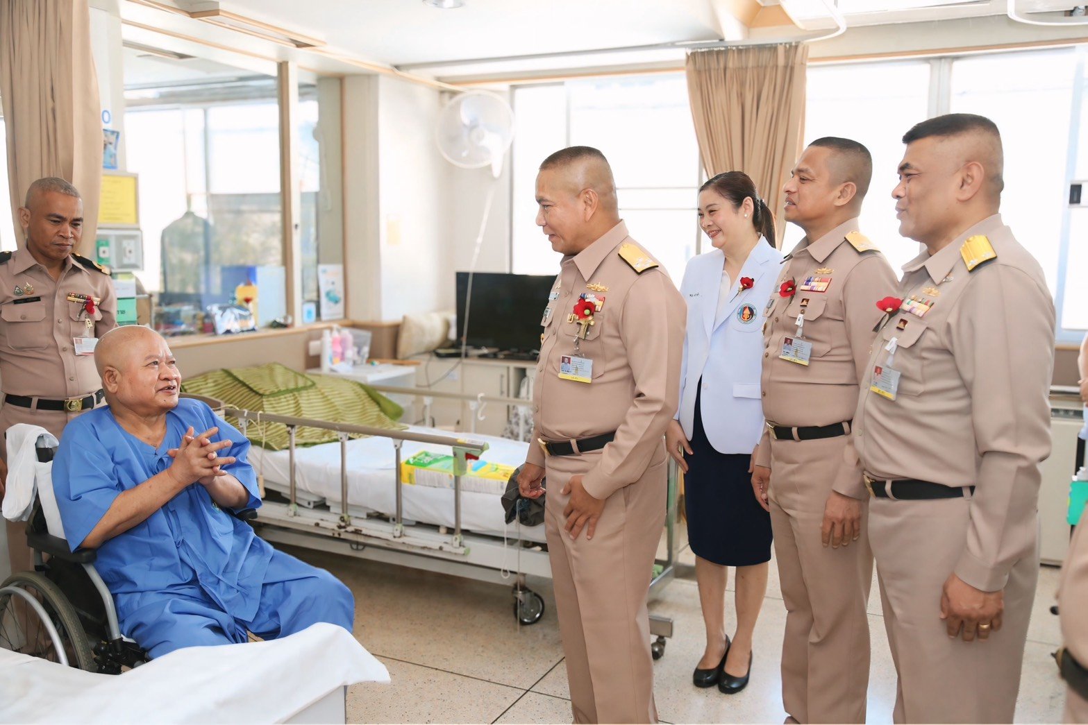 เมื่อวันที่ 3 กุมภาพันธ์ 2569 พลเรือเอก ไพโรจน์ เฟื่องจันทร์ ผู้บัญชาการทหารเรือ พร้อมด้วย พลเรือเอก นเรศ วงศ์ตระกูล ผู้ช่วยผู้บัญชาการทหารเรือ, พลเรือตรี วิชชุ บำรุง เจ้ากรมสวัสดิการทหารเรือ และคณะ เข้าเยี่ยมบำรุงขวัญเพื่อสร้างขวัญกำลังใจและแสดงความห่วงใยแก่ เรือตรี นอม สุวรรณพิทักษ์ ซึ่งเป็นทหารผ่านศึกที่พิการทุพพลภาพจากการปฏิบัติหน้าที่รักษาเอกราชและอธิปไตยของชาติในส่วนของกองทัพเรือ เนื่องในวันทหารผ่านศึก ประจำปี 2569 นอกจากนี้ ยังได้มอบเงินบำรุงขวัญ กองทุนสวัสดิการน้ำใจไทยเพื่อผู้เสียสละในจังหวัดชายแดนภาคใต้ และพื้นที่รับผิดชอบกองทัพเรือ พร้อมมอบกระเช้าของขวัญและอาหาร โดยมี แพทย์หญิงเอินฟ้า ณ นคร รองผู้อำนวยการโรงพยาบาลทหารผ่านศึก (ฝ่ายบริหาร) และคณะ ให้การต้อนรับ ณ ตึกผู้ป่วย อาคาร 2 ชั้นที่ 4 โรงพยาบาลทหารผ่านศึก