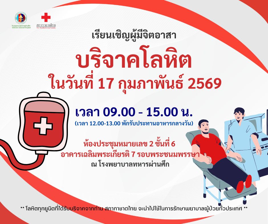 สภากาชาดไทย ร่วมกับ โรงพยาบาลทหารผ่านศึก ขอเชิญร่วมบริจาคโลหิต