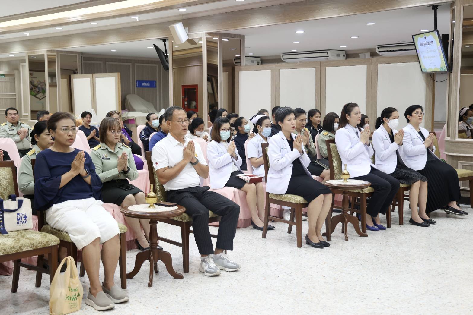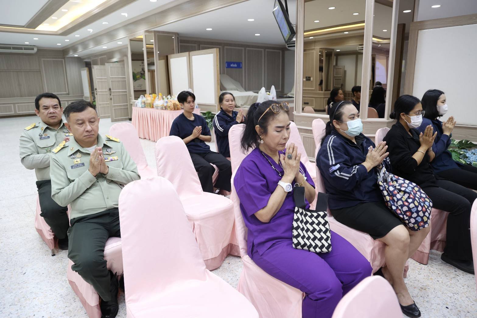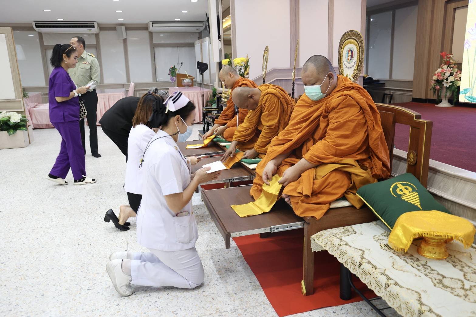 ในโอกาสนี้ พลเอก เดชนิธิศ เหลืองงามขำ อดีตผู้อำนวยการองค์การสงเคราะห์ทหารผ่านศึก พร้อมด้วย คุณอานุสรา โรจนประดิษฐ อดีตนายกสมาคมแม่บ้านองค์การสงเคราะห์ทหารผ่านศึก ได้เข้าร่วมในพิธี