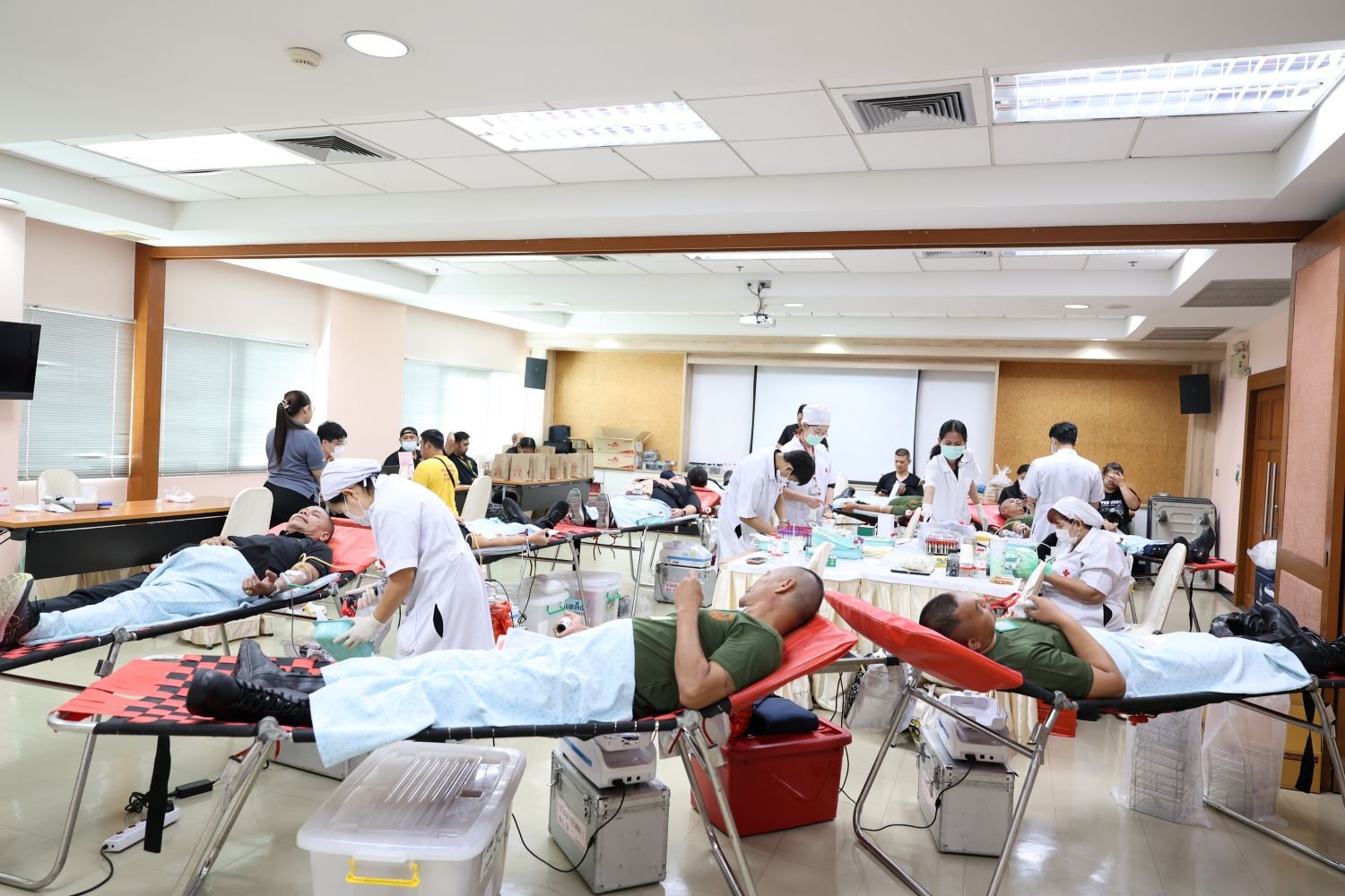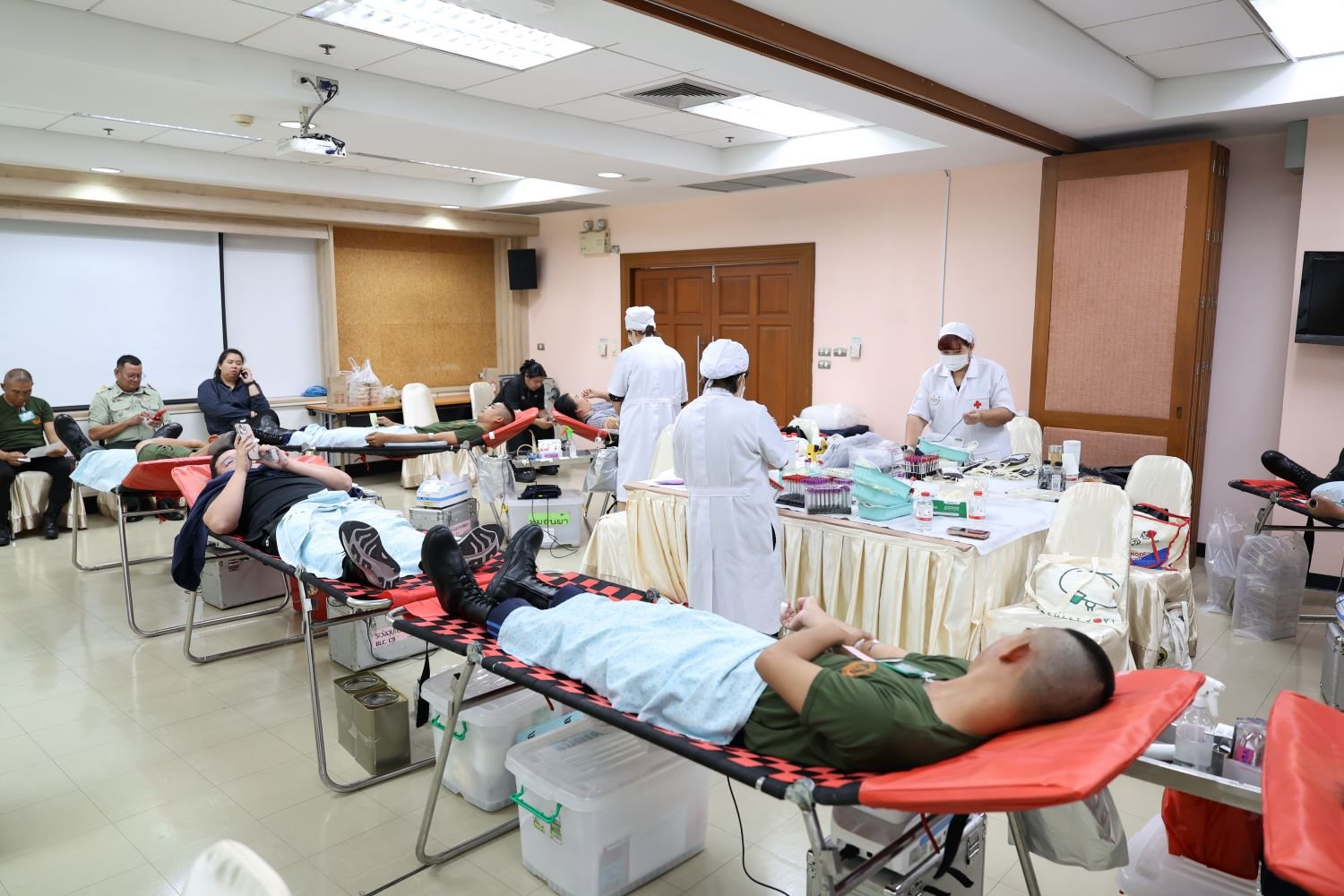 ในการนี้ ได้มีพนักงาน ลูกจ้าง และเจ้าหน้าที่หน่วยงานกิจการพิเศษขององค์การสงเคราะทหารผ่านศึก ตลอดจนเจ้าหน้าที่รักษาความปลอดภัย สำนักงานรักษาความปลอดภัย องค์การสงเคราะห์ทหารผ่านศึก รวมถึงทหารผ่านศึก และผู้เข้ารับบริการจากโรงพยาบาลทหารผ่านศึก เข้าร่วมบริจาคโลหิต ณ ห้องประชุมหมายเลข 2 ชั้นที่ 6 อาคารเฉลิมพระเกียรติ 7 รอบ พระชนมพรรษา โรงพยาบาลทหารผ่านศึก