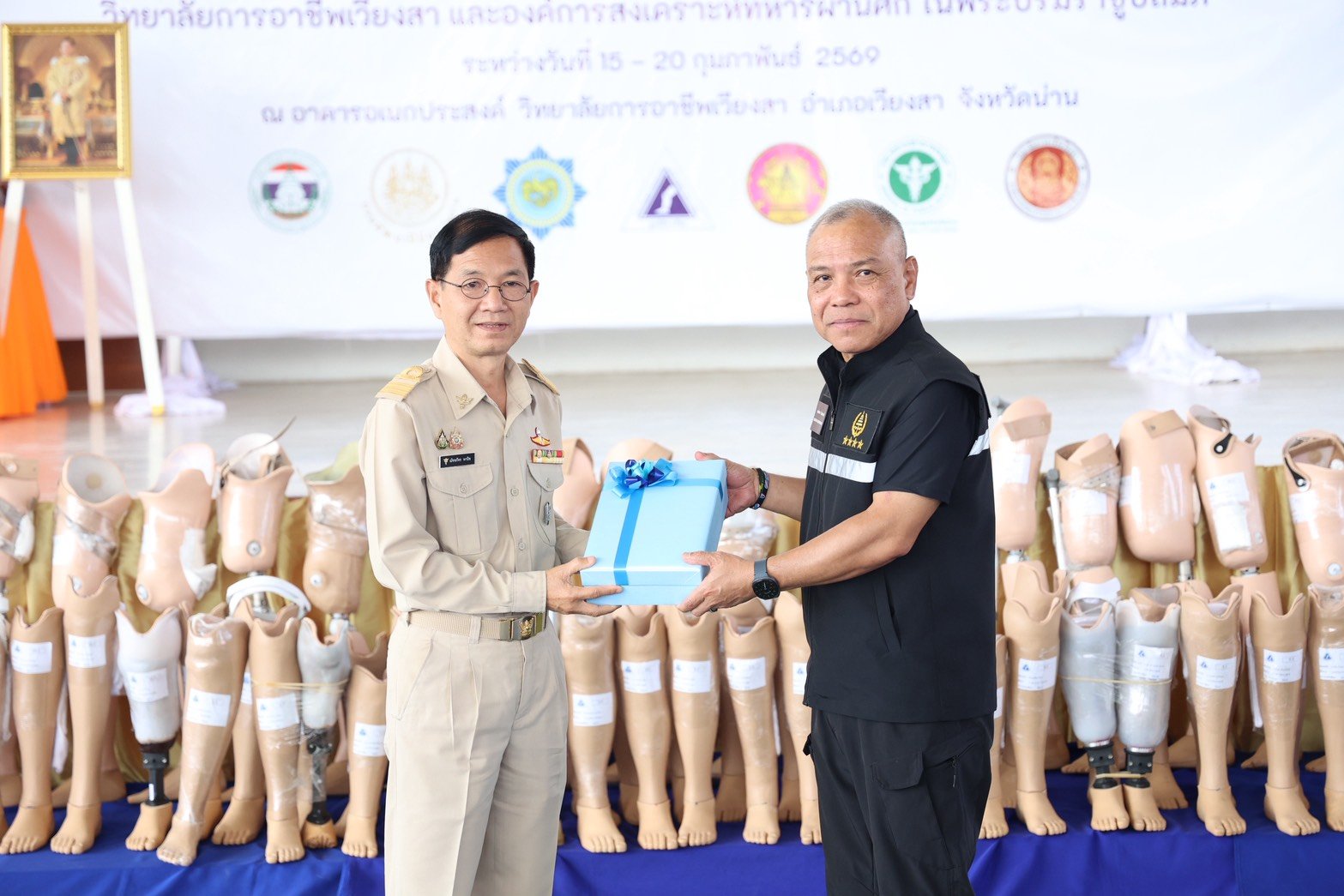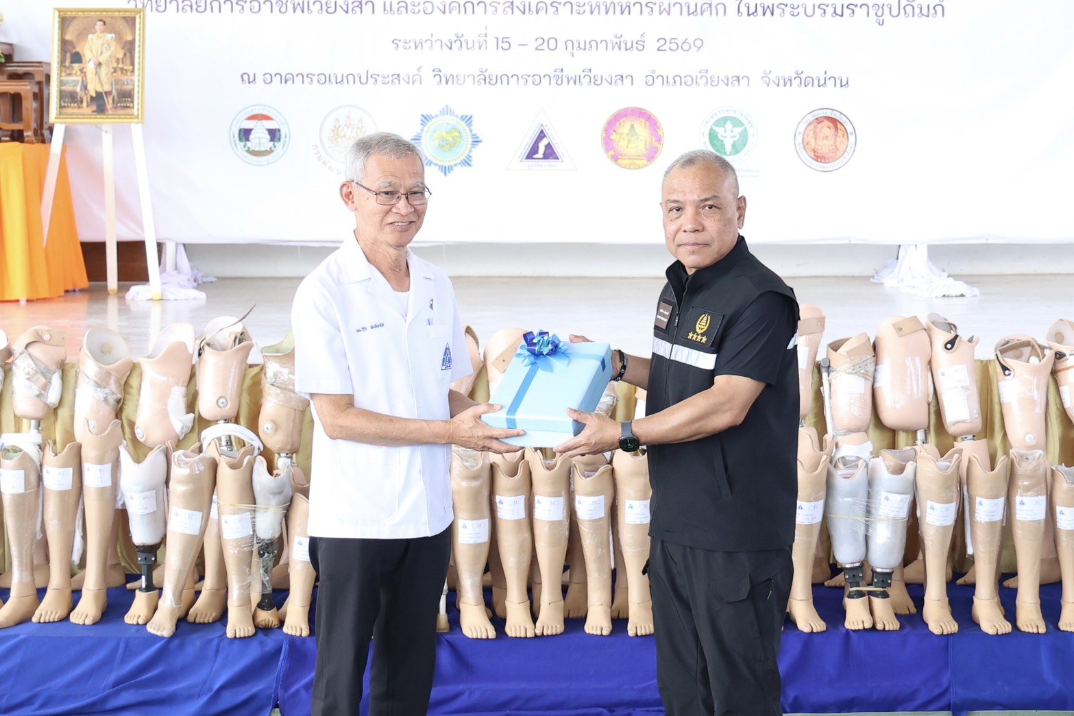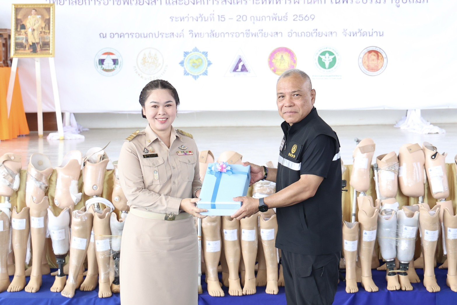 เมื่อวันที่ 20 กุมภาพันธ์ 2569 นางสาวณัฐยาน์ ทวีวงศ์ รองผู้ว่าราชการจังหวัดน่าน เป็นประธานในพิธีมอบขาเทียมพระราชทานแก่คนพิการขาขาดในจังหวัดน่าน ตามโครงการออกหน่วยทำขาเทียมพระราชทานเคลื่อนที่ ครั้งที่ 176 ซึ่งมูลนิธิขาเทียม ในสมเด็จพระศรีนครินทราบรมราชชนนี ร่วมกับองค์การสงเคราะห์ทหารผ่านศึก ในพระบรมราชูปถัมภ์ โดยโรงพยาบาลทหารผ่านศึก และวิทยาลัยการอาชีพเวียงสา จังหวัดน่าน จัดขึ้นเพื่อถวายเป็นพระราชกุศลแด่สมเด็จพระนางเจ้าสิริกิติ์ พระบรมราชินีนาถ พระบรมราชชนนีพันปีหลวง ระหว่างวันที่ 15 - 20 กุมภาพันธ์ 2569 ในการจัดทำขาเทียมให้แก่คนพิการขาขาดทุกเชื้อชาติและศาสนา โดยไม่คิดมูลค่า ณ อาคารอเนกประสงค์ วิทยาลัยการอาชีพเวียงสา ตำบลนาเหลือง อำเภอเวียงสา จังหวัดน่าน