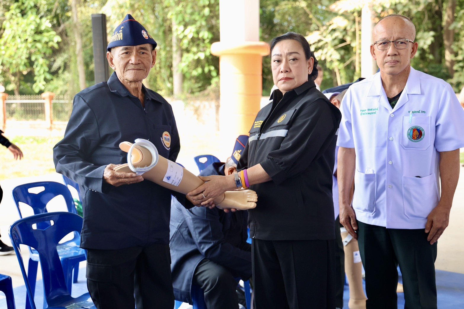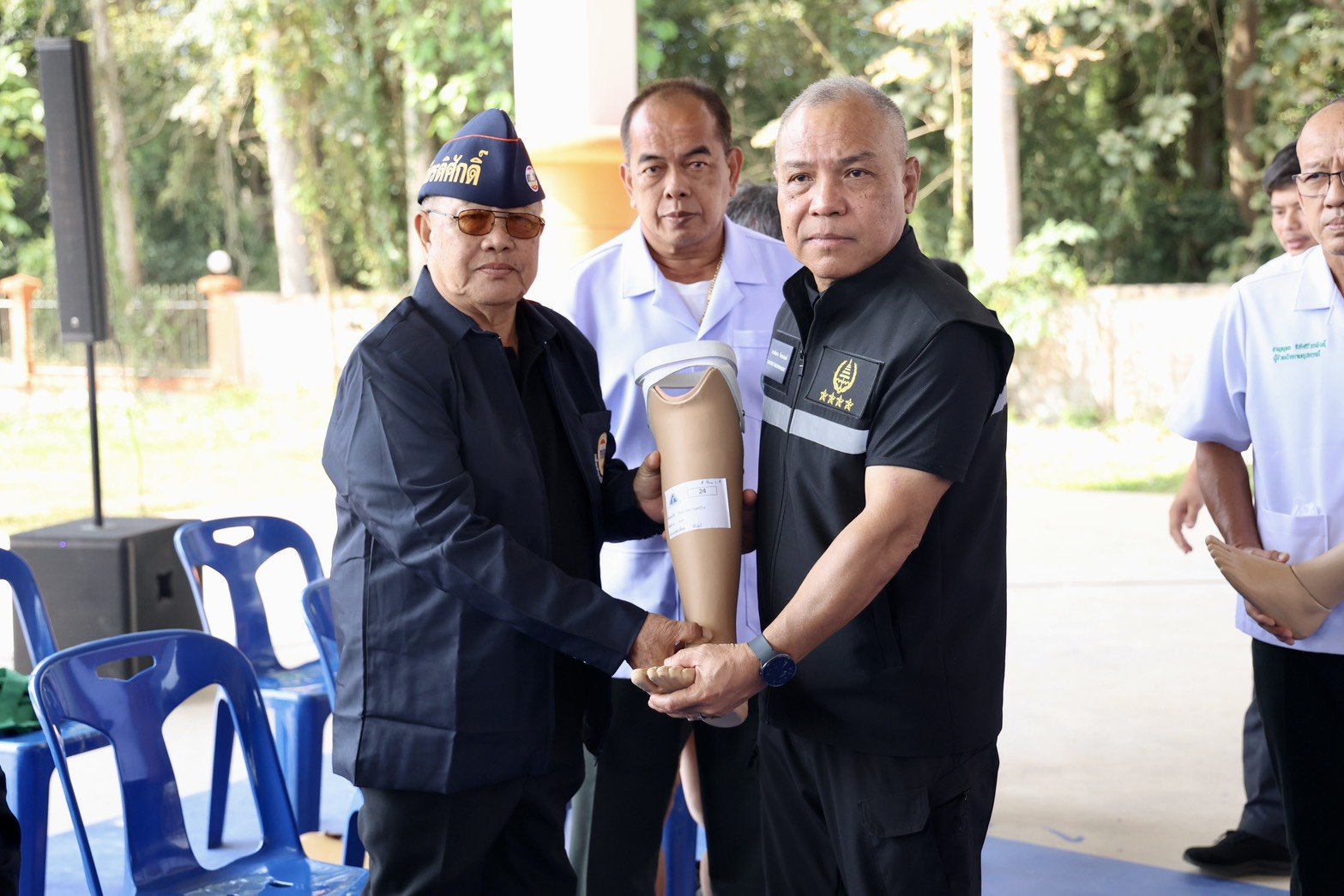 จากนั้น ศาสตราจารย์คลินิก นายแพทย์นิเวศน์ นันทจิต เลขาธิการมูลนิธิขาเทียมฯ ได้กล่าวขอบคุณผู้สนับสนุนโครงการฯ และแสดงความยินดีกับคนพิการขาขาด โดยมี นายแพทย์ชาญชัย พจมานวิพุธ รองเลขาธิการมูลนิธิขาเทียมฯ ฝ่ายบริการวิชาการ และพัฒนาคุณภาพ กล่าวรายงานผลการปฏิบัติงาน คุณเกรียงฤทธิ์ สุขเจริญสิน กรรมการมูลนิธิขาเทียมฯ มอบโล่เกียรติคุณแก่หน่วยงานที่สนับสนุนโครงการฯ พลเอก กานต์นาท นิกรยานนท์ ผู้อำนวยการองค์การสงเคราะห์ทหารผ่านศึก มอบของที่ระลึกแก่ผู้สนับสนุนโครงการ พร้อมด้วยคุณดวงชุตา ติยะพจนพรกุล ผู้จัดการฝ่ายสังคมสงเคราะห์ มูลนิธิป่อเต็กตึ๊ง มอบป้ายสนับสนุนโครงการออกหน่วยทำขาเทียมพระราชทานเคลื่อนที่ในนามมูลนิธิป่อเต็กตึ๊ง และคุณชนะ เหล่าวีระกุล ประธานคณะผู้บริหารธุรกิจขนส่งและบริการ เครือเจริญโภคภัณฑ์ มอบป้ายสนับสนุนโครงการฯ