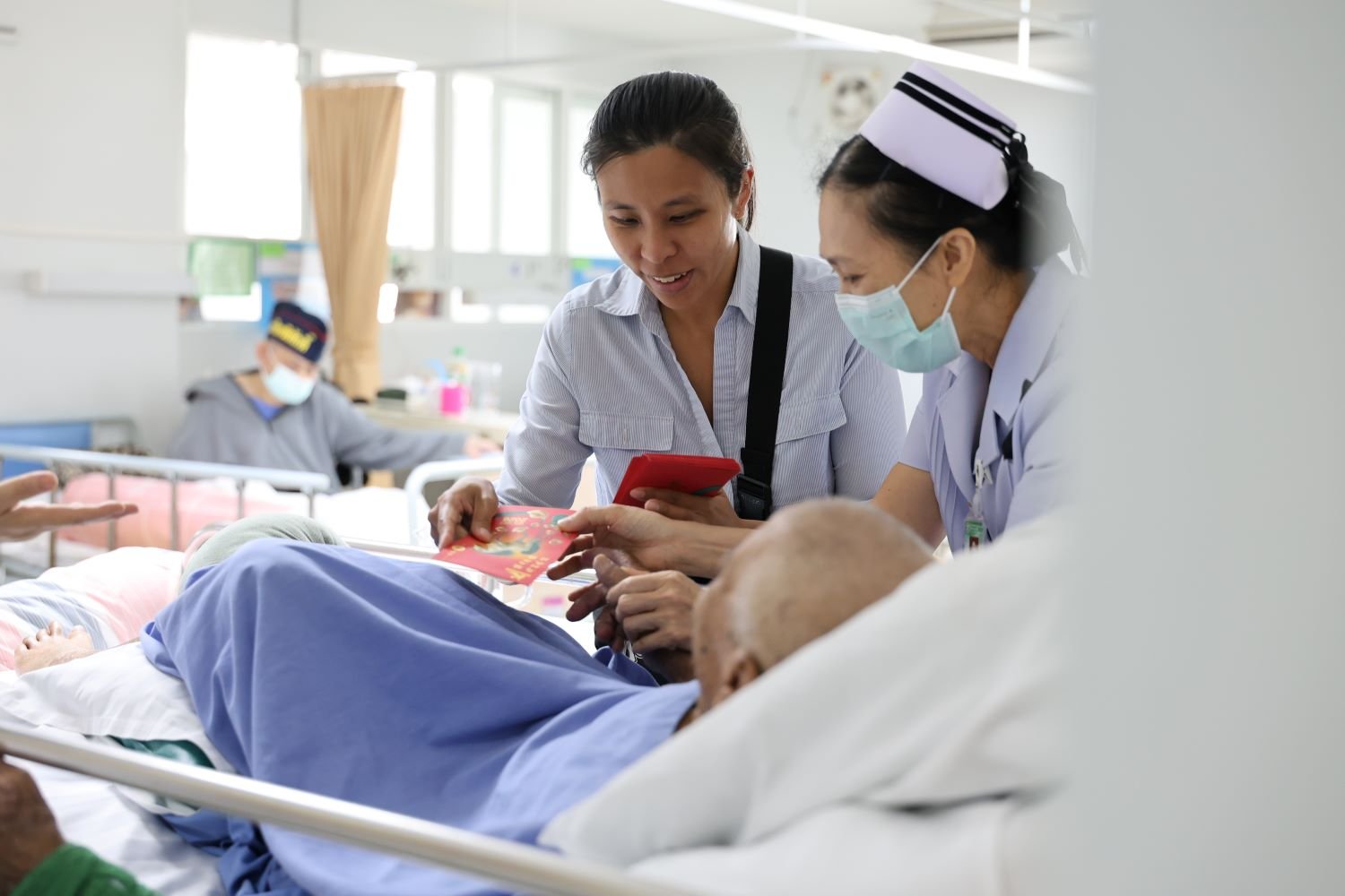 เมื่อวันที่ 23 กุมภาพันธ์ 2569 นางพัชรินทร์ ท้วมผิวทอง ผู้อำนวยการกองพยาบาล โรงพยาบาลทหารผ่านศึก และคณะ เป็นผู้แทนผู้อำนวยการโรงพยาบาลทหารผ่านศึก ให้การต้อนรับ คุณนภพรรณ จงเลิศจรรยา และครอบครัว ในโอกาสเข้าเยี่ยมบำรุงขวัญ พร้อมมอบอั่งเปาให้แก่ทหารผ่านศึกที่ได้รับบาดเจ็บจากการปฏิบัติหน้าที่ ซึ่งพักรักษาตัวอยู่ที่หอพักผู้ป่วย อาคาร 2 ชั้นที่ 3 , 4 และ 7 โรงพยาบาลทหารผ่านศึก จำนวน 72 นาย