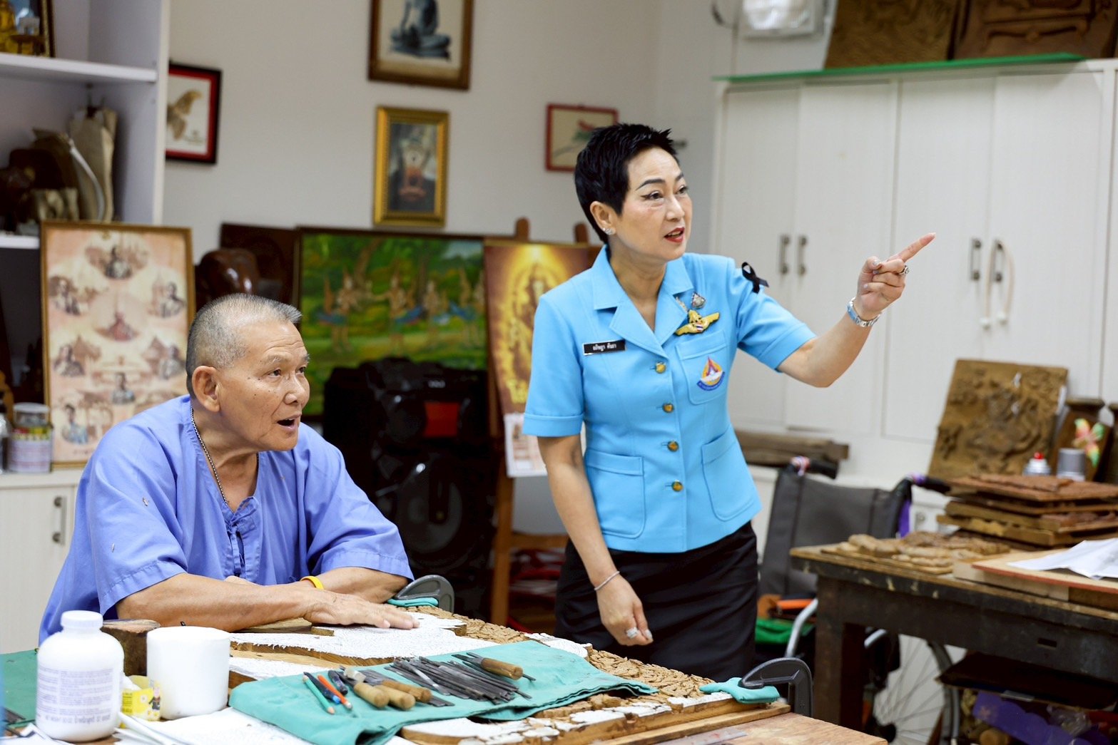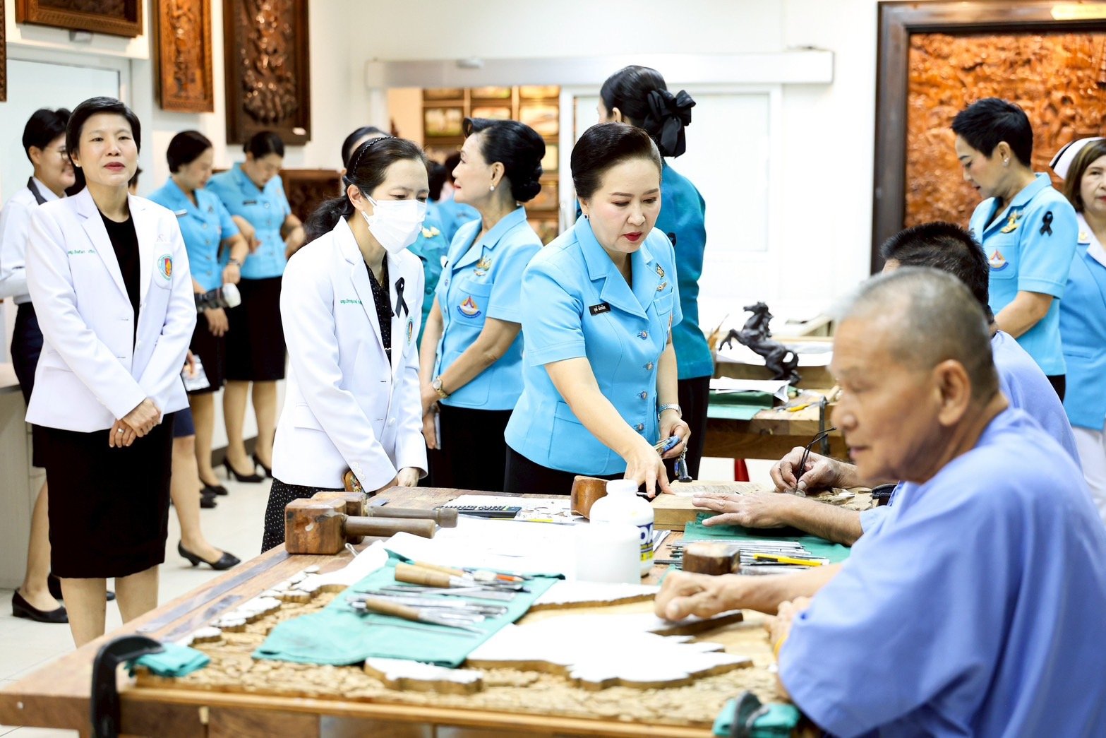โอกาสนี้ นายกสมาคมคู่สมรสทหารอากาศ และคณะ ได้เยี่ยมชมศูนย์กิจกรรมบำบัดและฝึกอาชีพ โรงพยาบาลทหารผ่านศึก รวมทั้งได้ร่วมพูดคุยเพื่อสร้างขวัญกำลังใจแก่ทหารผ่านศึก