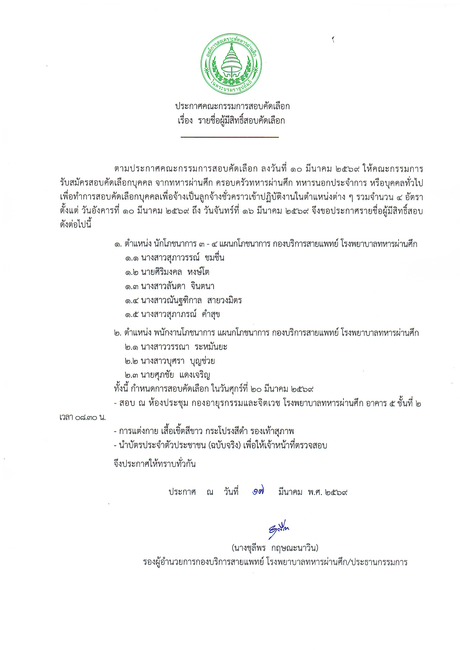 ประกาศรายชื่อผู้มีสิทธิ์สอบคัดเลือก เพื่อจ้างเป็นลูกจ้างชั่วคราว