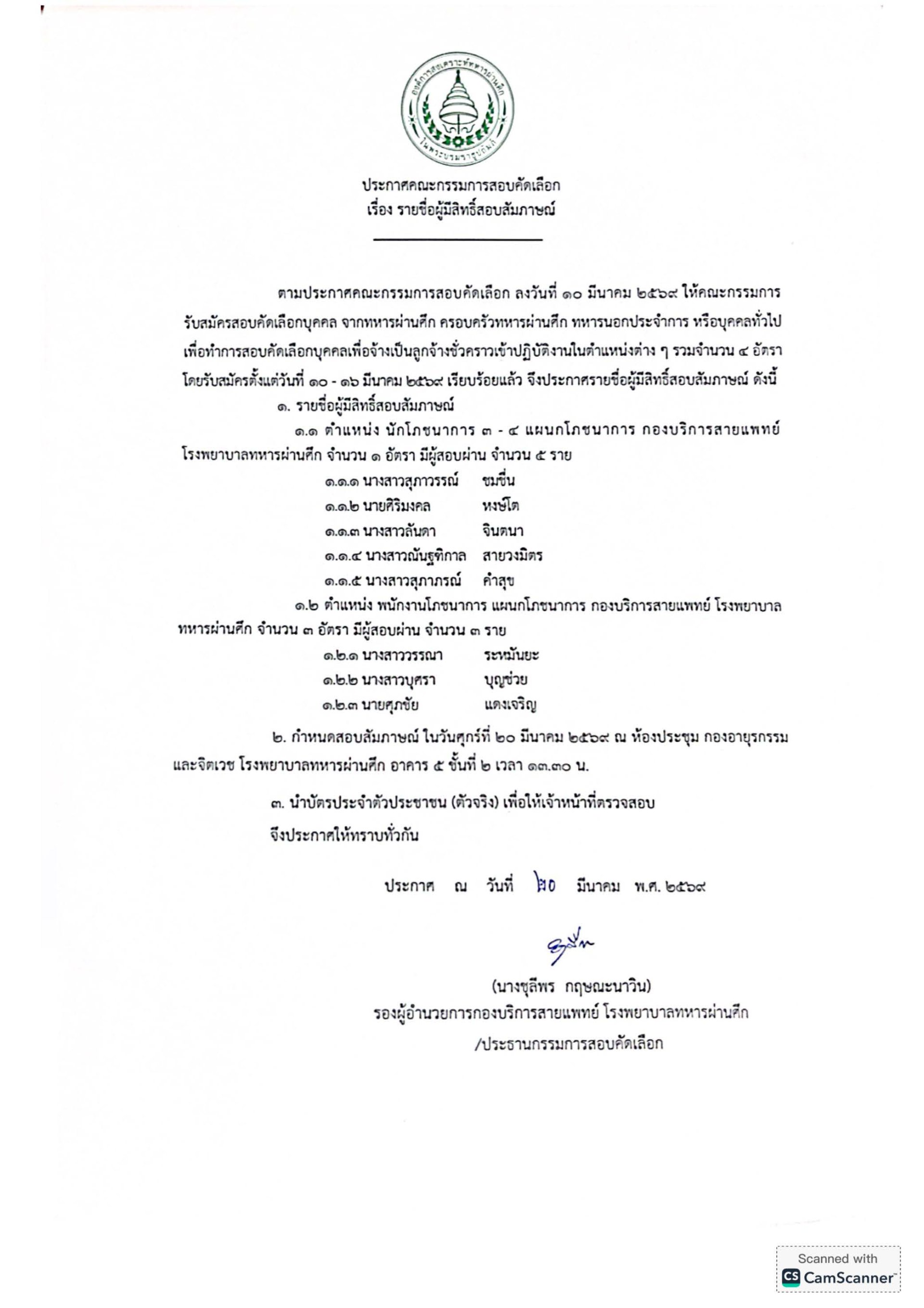 ประกาศรายชื่อผู้มีสิทธิ์สอบสัมภาษณ์ ลูกจ้างชั่วคราว