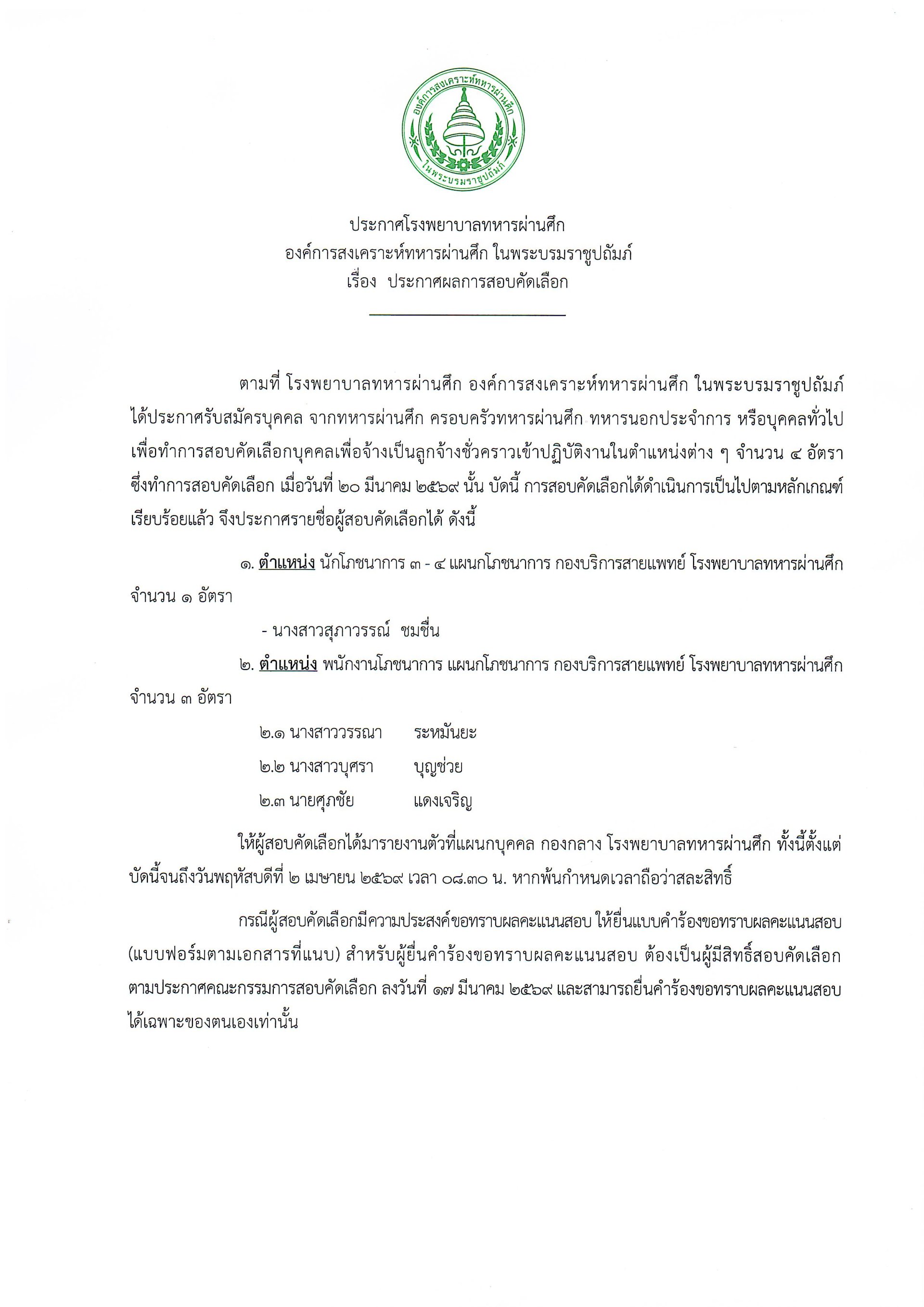ประกาศผลสอบคัดเลือกลูกจ้างชั่วคราว