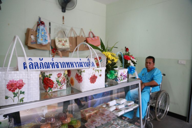 นอกจากนี้ ยังได้รับพระกรุณาธิคุณจากพระเจ้าวรวงศ์เธอ พระองค์เจ้าโสมสวลี พระวรราชาทินัดดามาตุ ทรงพระกรุณาประทานอุปกรณ์ในการประดิษฐ์ศิลปะเดคูพาจ อาทิ กล่องไม้ กระดาษ สี และน้ำยาเคลือบให้แก่ทหารผ่านศึกพิการ