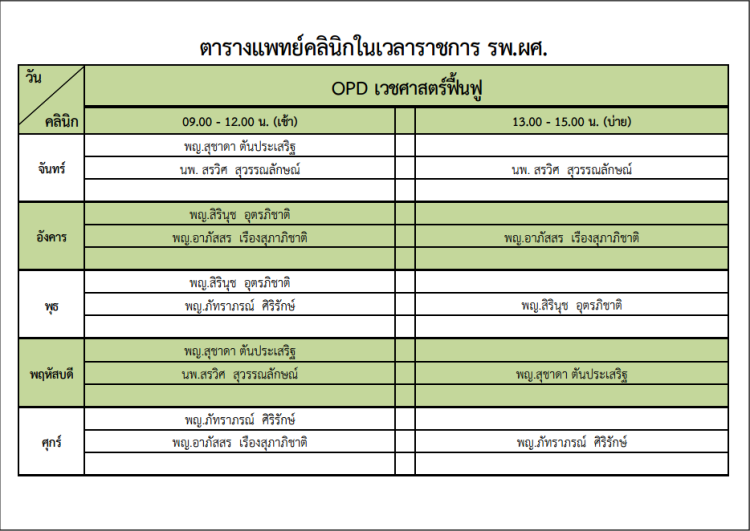 ตารางแพทย์เวชศาสตร์ฟื้นฟู