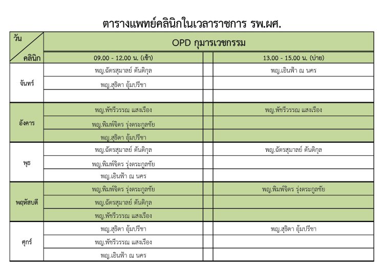 ตารางแพทย์กุมารเวชกรรม
