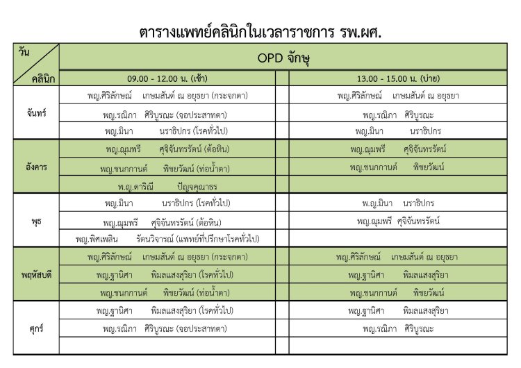 ตารางแพทย์จักษุ