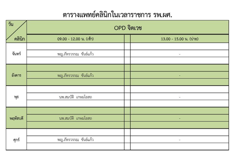 ตารางแพทย์จิตเวช