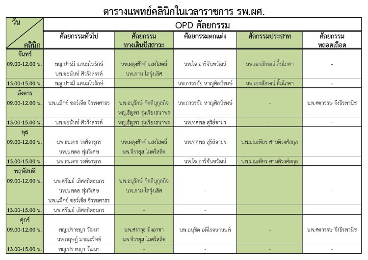 ตารางแพทย์ศัลยกรรม
