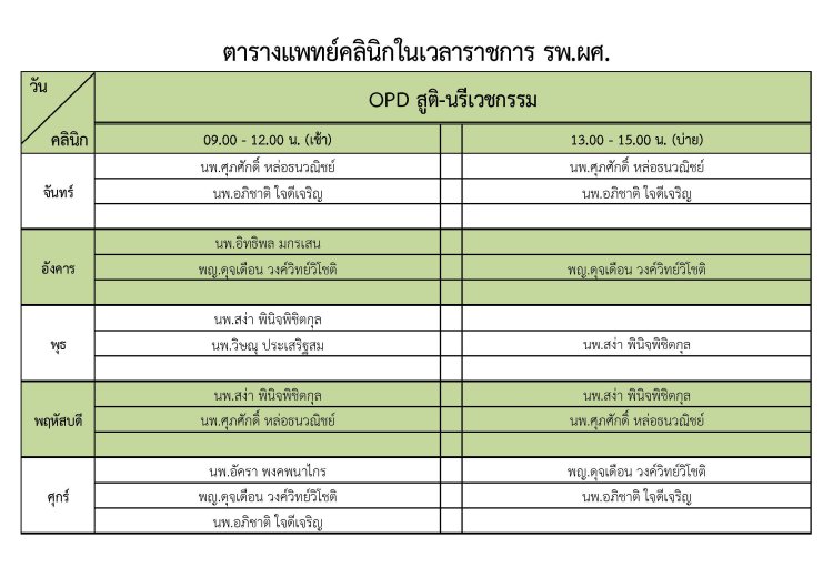 ตารางแพทย์สูตินรีเวชกรรม