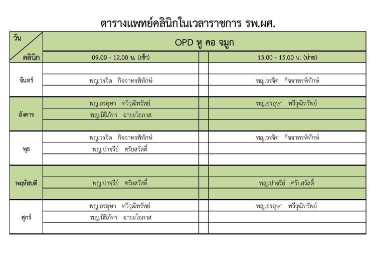 ตารางแพทย์หูคอจมูก